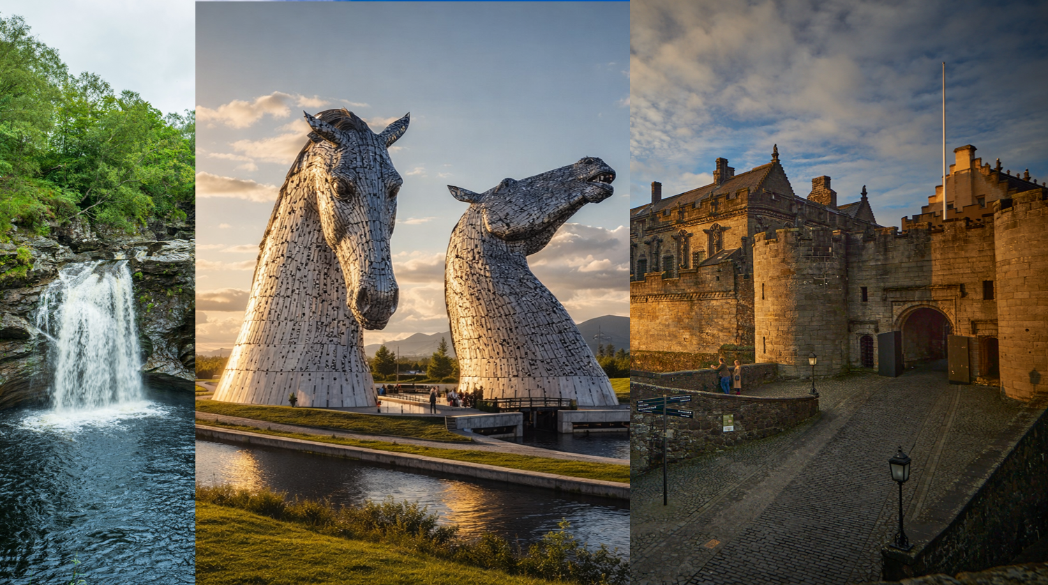 Discover Scotland’s natural beauty and historic landmarks, from Loch Lomond to the Kelpies and the grandeur of Stirling Castle.